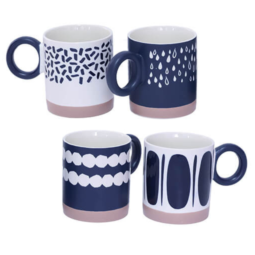 Ceramic Navy / White Coffee Mugs 400ml - Set of 4Regular price R 249.00