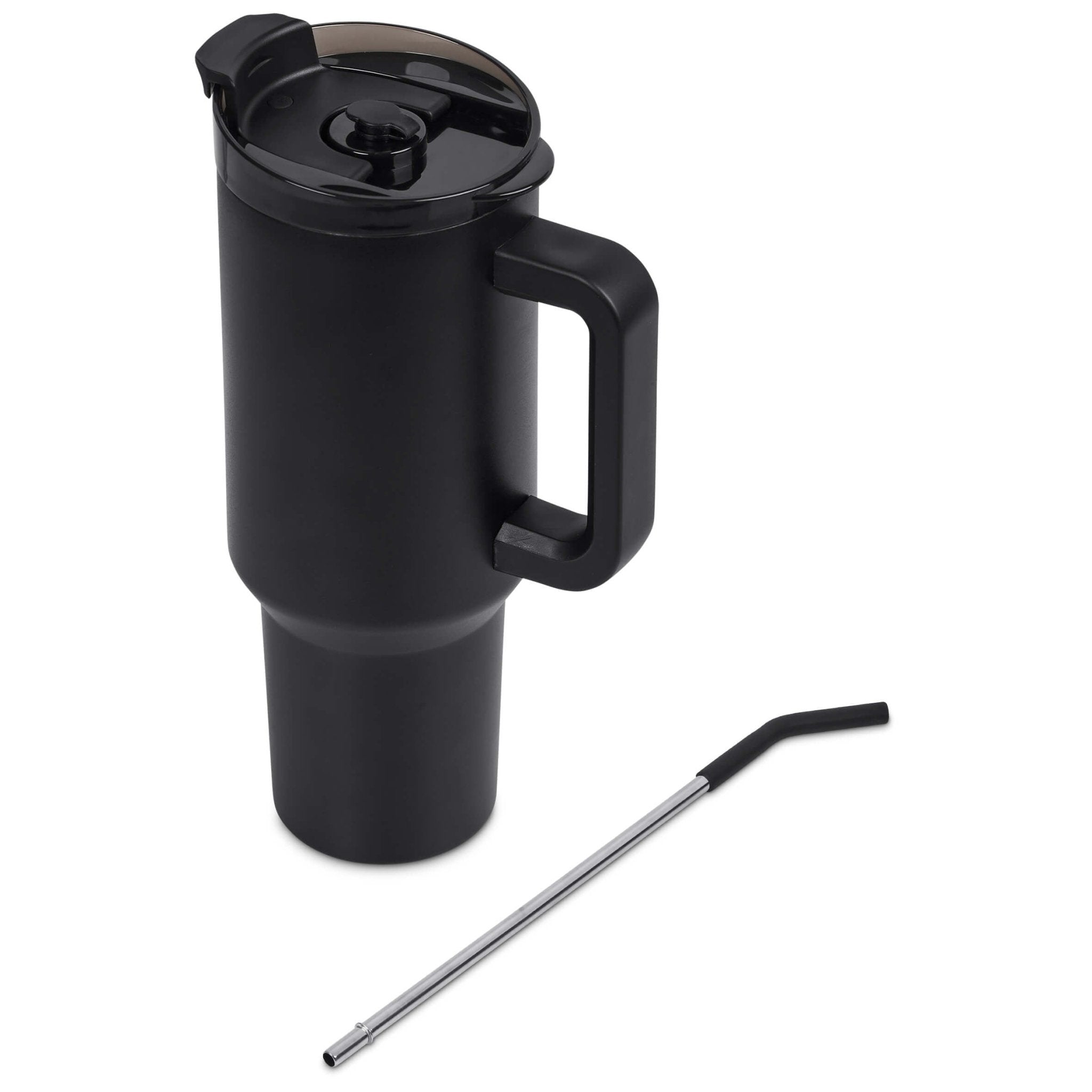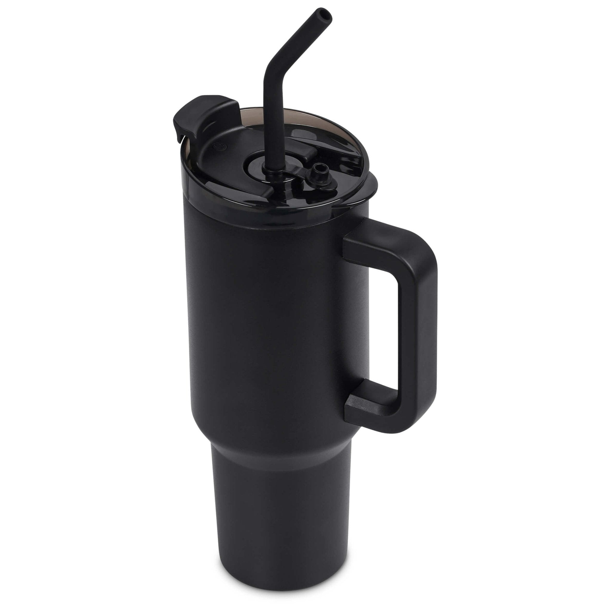 The chunky handle makes it easy to carry, despite its size. The ultra-secure lid is dual function, with the option of sipping from the lid or through the removable stainless steel straw, which has a comfortable silicone mouthpiece. The tapered design of the base allows the mug to fit comfortably in your vehicle’s cup holder.